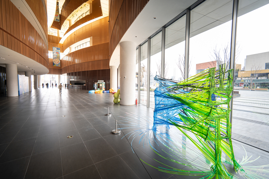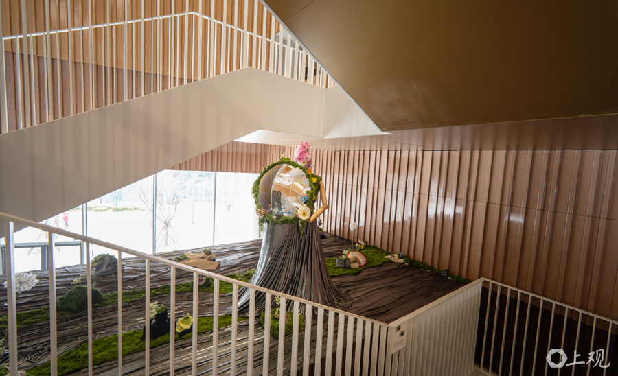 从剧场的各处角落摆放着的艺术作品既能感受到春天的气息,也有满满先锋艺术的气质。