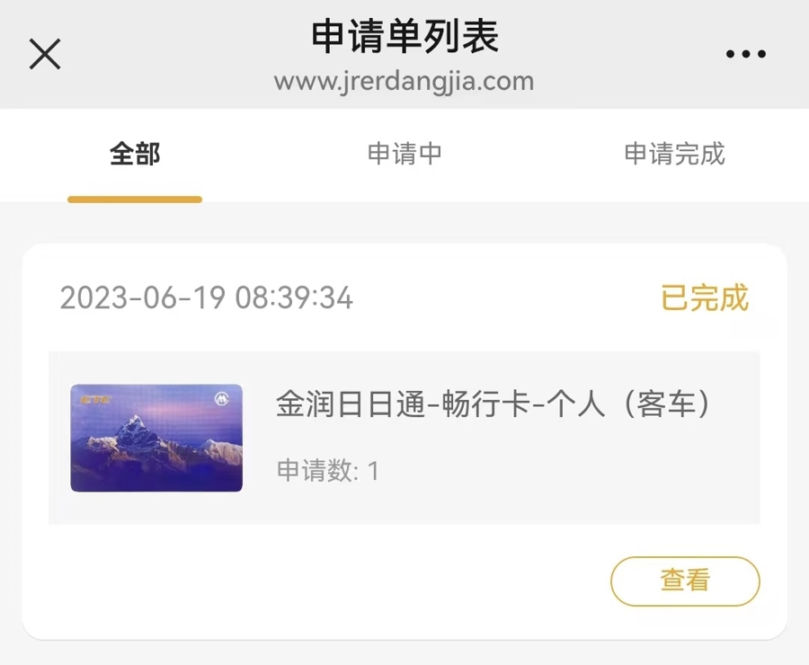 消费者王先生在“金润二当家”小程序上办理的ETC卡叫“金润日日通-畅行卡”。