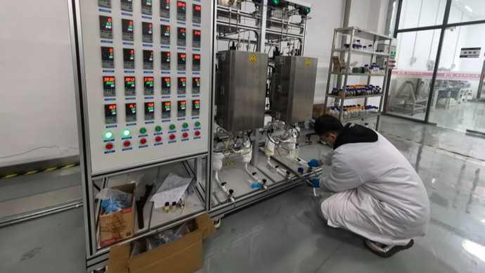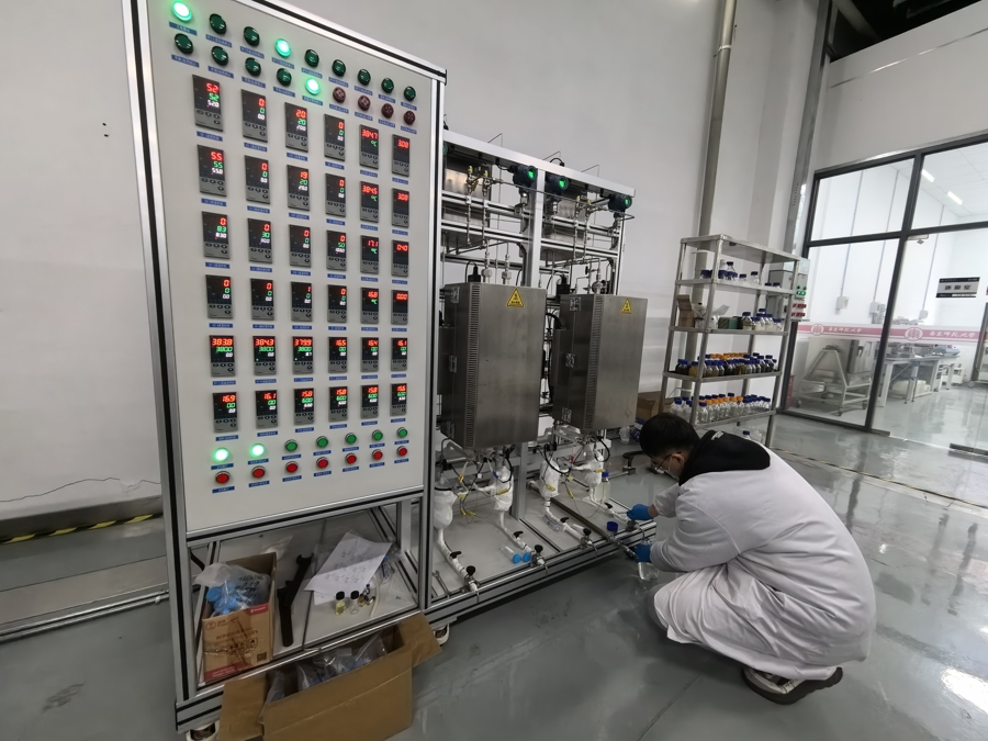 华东师大科研人员在固定床反应器旁取样。俞陶然摄