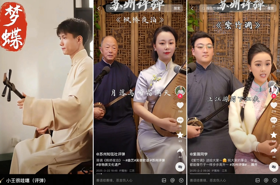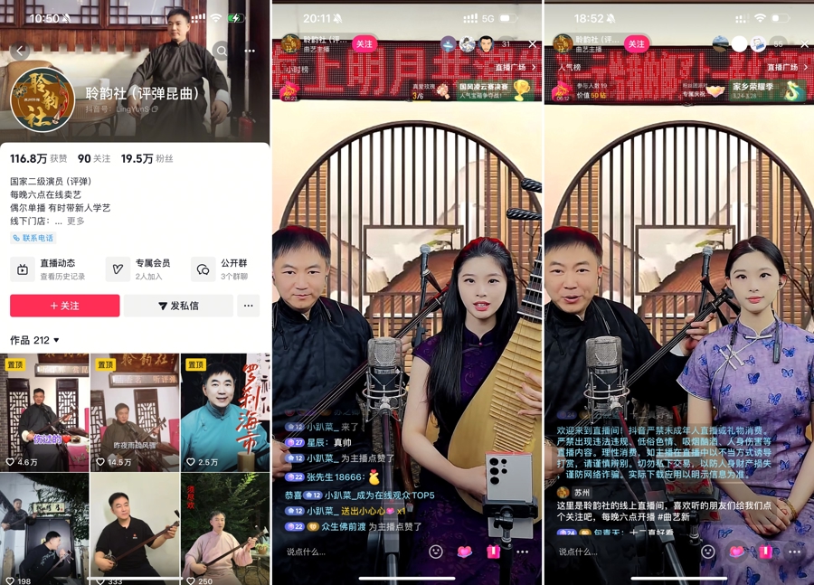 据抖音发布的《演艺直播数据报告》,评弹直播是2023年获得打赏收入最高的曲艺类直播;在地方特色演出类目里,评弹也是省外观众比例较高的类目之一,2024年省外直播观众人次是省内观众人次的3.27倍。借助直播间,评弹这一地方剧种正走向越来越广阔的舞台。