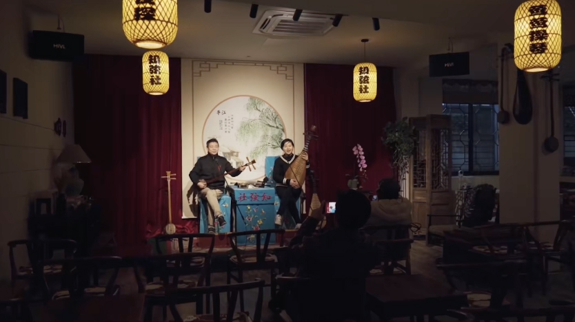 知弦社,是平江路上有名的评弹茶馆,由年近八旬的评弹票友沈游创办。除了茶馆里每日的演出,知弦社旗下还有十余位评弹主播,孵化出大大小小的评弹账号。