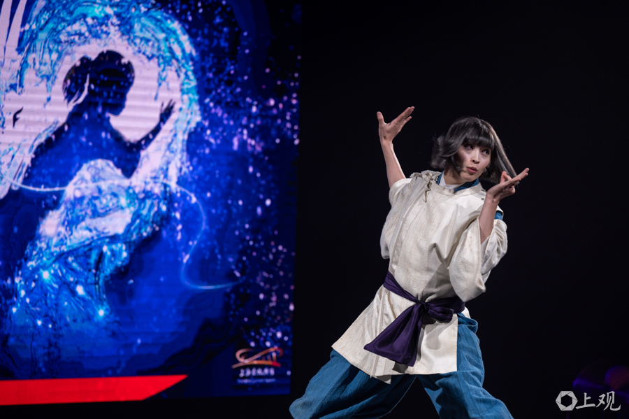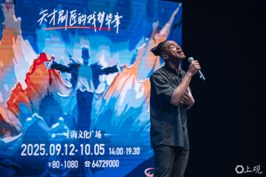 法国音乐剧《莫里哀》中的演员在发布会的舞台上献唱。