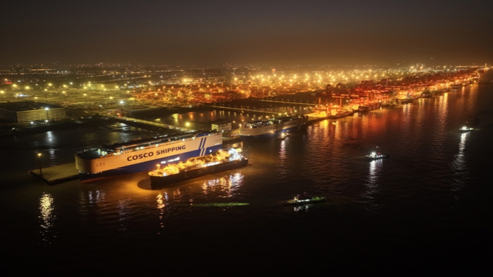 2022年1月,《中国(上海)自由贸易试验区临港新片区国际航行船舶保税液化天然气加注试点管理办法(试行)》出台,从申报流程、经验规范、监督管理等方面建章立制。同年3月,上海港完成了LNG“船-船”同步加注的“中国首单”,成为全国首个、全球第三个拥有“船-船”同步加注保税LNG服务能力的大型港口。随后不断拓展加注作业区域和服务船舶类型,接受加注服务的客户已拓展至近10家主要国际航运公司。自2022年首单LNG加注业务开展至今,上海港已累计完成国际航行船舶保税LNG加注173艘次,加注量达100万立方米。2024年LNG全年加注量为46.2万立方米,同比增长超74.95%。