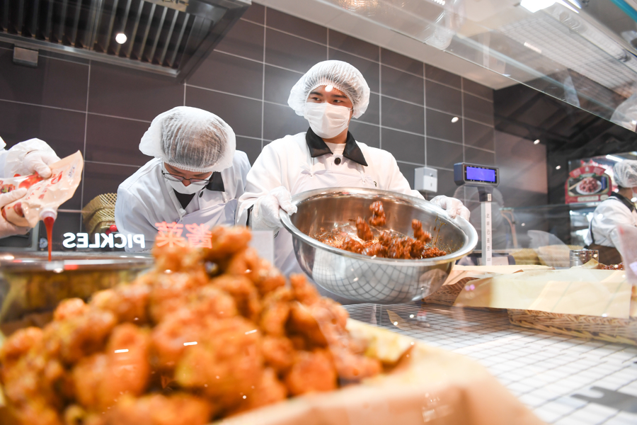 熟食区推出“胖东来同款”小红肠,秘制牛肉条、韩式炸鸡、烤鸭。