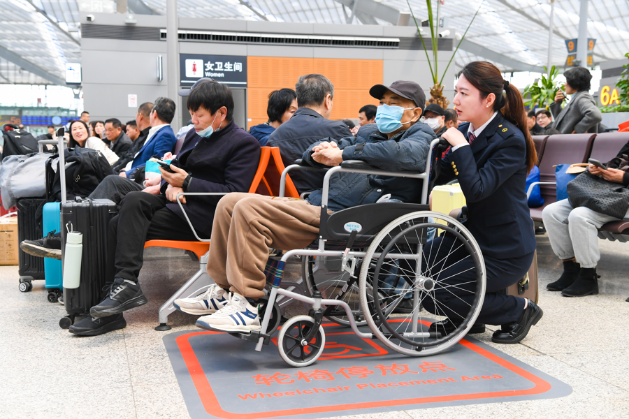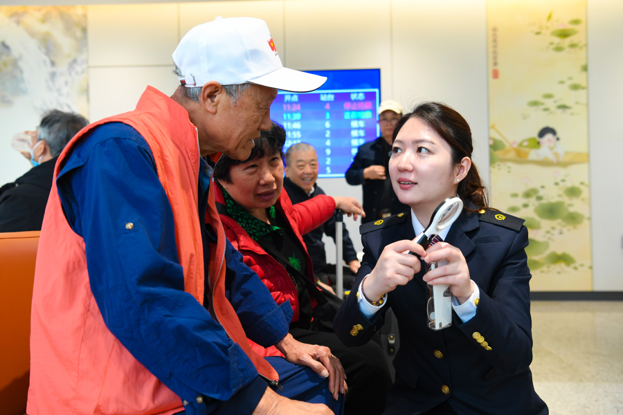 值得一提的是,该站高度重视银发群体的出行体验,率先在上海南站打造长三角地区首个老年友好型车站。针对老年团体旅客,开辟候车专区,设置“银龄管家”提供专人引导和优先检票。候车室内增设“银发专座”,提供“温馨提示卡”、便民服务箱等适老服务,让老年旅客出行更加安心、省心。针对轮椅旅客,升级无障碍服务,设置轮椅停靠点和轮椅检票暂候区,方便轮椅旅客出行。