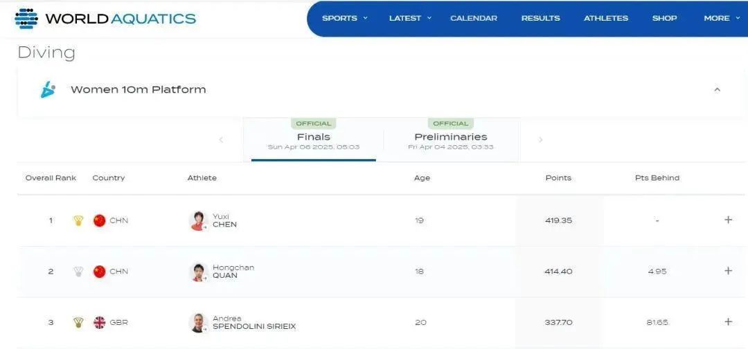 北京时间4月6日,2025世界泳联跳水世界杯分站赛瓜达拉哈拉站结束了女子10米跳台决赛的争夺。
