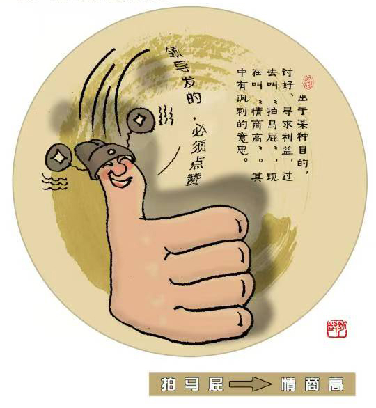 出于某种目的,讨好、寻求利益,过去叫“拍马屁”,现在叫“情商高”。