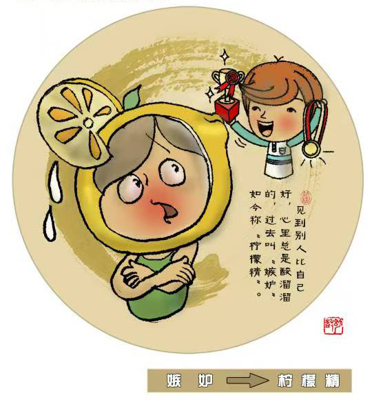 见到别人比自己好,心里总是酸溜溜的,过去叫“嫉妒”如今称“柠檬精”。