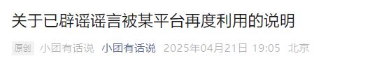 4月21日晚,美团官方发布《关于已辟谣谣言被某平台再度利用的说明》。