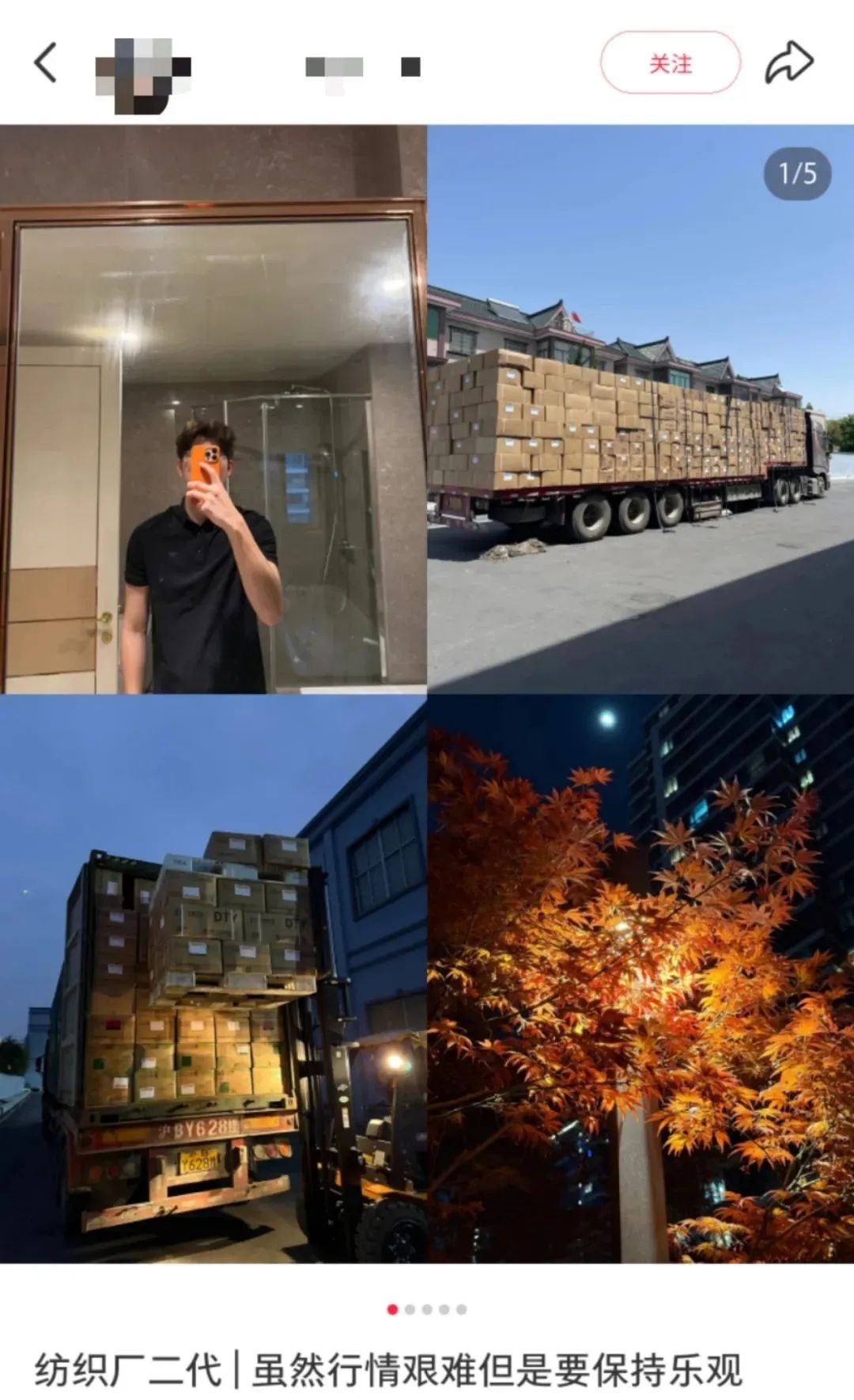 小徐家里2003年开始在杭州萧山开纺织厂,属于当地龙头企业,这个98年的小伙也已经入行5年,对于纺织行业有着自己的理解。小徐在小红书发布了对关税战影响的看法后,引来不少同行共鸣,还有想要入行传统制造业的年轻人犹豫不决,他们也会向小徐咨询,包括有哪些潜力市场,欧美市场的关税等问题,小徐都会在自己知识范围内进行解答。
