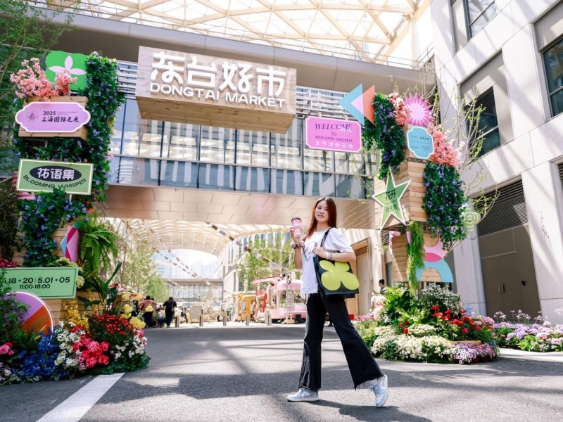 茉莉奶白同步进驻花展东台好市分会场,将品牌标志性的花香鲜茶与特调饮品带入百年历史街区——东台路,曾是万商云集的古玩老街与花鸟市场,见证着上海城市文脉的变迁。通过融合传统建筑元素与现代设计语言的快闪展位,品牌在曾为古玩老街的东台路打造“人在花中”的沉浸式体验:游客既可欣赏花卉艺术,又能品尝以茉莉为代表的花香茶饮,同步购买品牌限定周边产品。这种场景化营销策略,使品牌与消费者建立起“花香即品牌”的强关联认知。