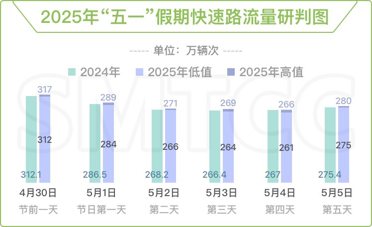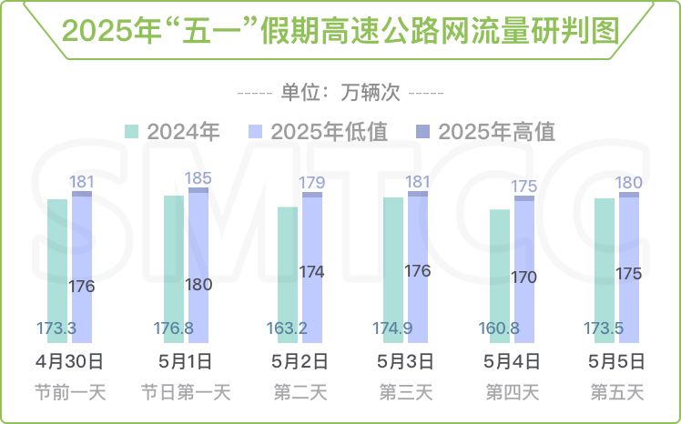 节日期间,预计高速公路日均流量达175-180万辆次,同比上升3%-6%。节日前一天和首日跨省出行的聚集效应最为显著,推升路网流量处于高位;假期后半程,随着返程流量的增加路网流量再次走高。