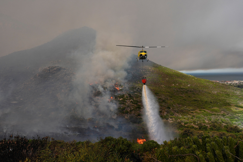 4月27日,直升机在南非开普敦的桌山国家公园参与灭火作业。