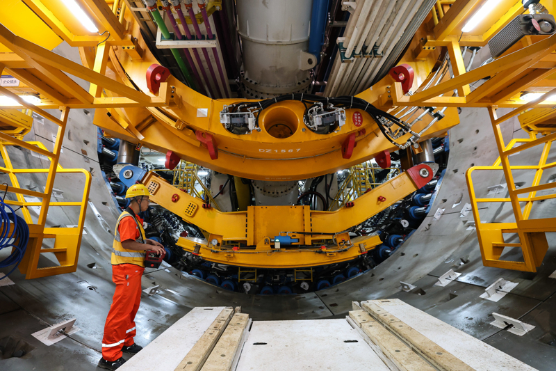 4月28日,施工人员在操控“永庆号”大直径盾构机的管片安装设备。当日,由中铁十一局承建的广(广州站)南(广州南站)联络线建设开启加速度,“永庆号”大直径盾构机始发,跨动走线特大桥开始现浇梁施工。广南联络线建成后,京广高铁、广深港高铁、贵广高铁、南广高铁等铁路线可直达位于中心城区的广州火车站,广州大都会交通枢纽功能将进一步增强。