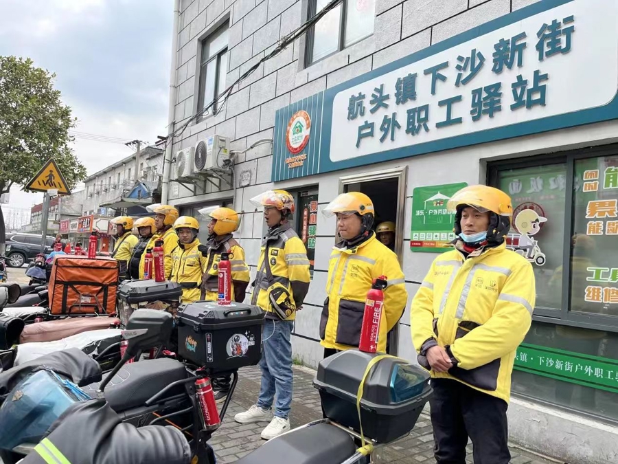 为深化基层消防安全治理体系建设,提升重点区域火灾防控能力,浦东新区消防救援局三林大队联合航头镇属地政府、消防办等相关部门企业,创新构建“骑手+消防”联动机制,依托外卖配送行业流动性优势,实现消防安全宣传精准覆盖。截至目前,下沙社区已组建16人外卖骑手消防志愿队,通过随车配备灭火器材、开展专业化培训等举措,打造基层消防治理新生力量。
