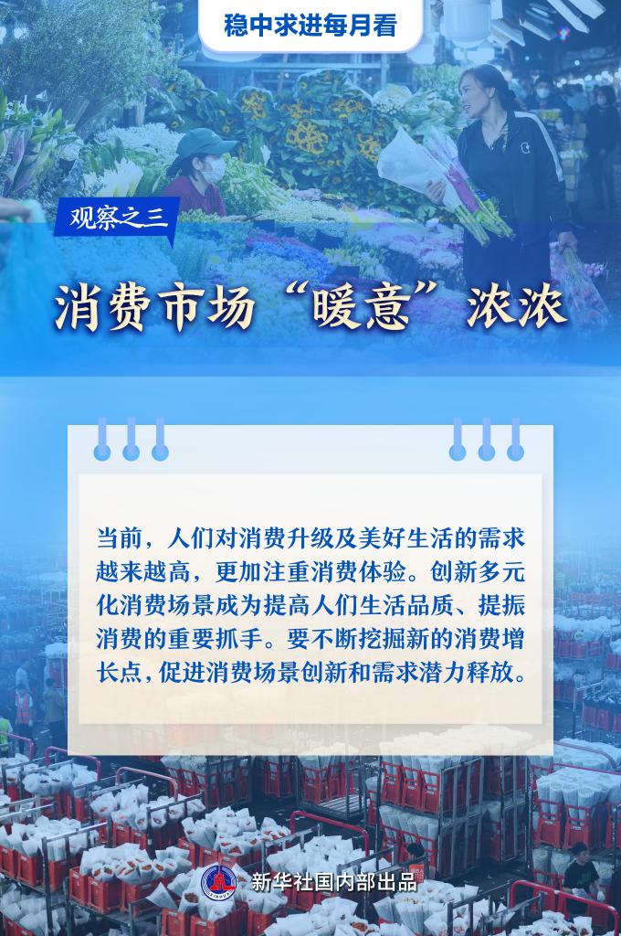 “鲜花经济”热是消费市场升温的一个缩影。4月,离境退税“即买即退”服务措施从试点推广至全国,进一步优化离境退税政策扩大入境消费的相关举措公布;促进家政服务消费扩容升级的若干措施出台……
