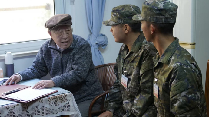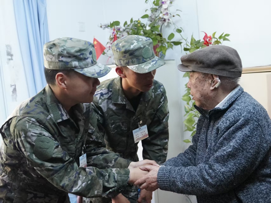 98岁战斗老英雄郝家润曾参加解放战争和抗美援朝战争,荣立战功三次,去年还向组织交纳100万元党费。他向武警官兵讲述老连长为救他牺牲的战斗故事,勉励大家苦练本领、团结一致、保家卫国,在新时代强军路上扛起胜利旗帜,接续向前。