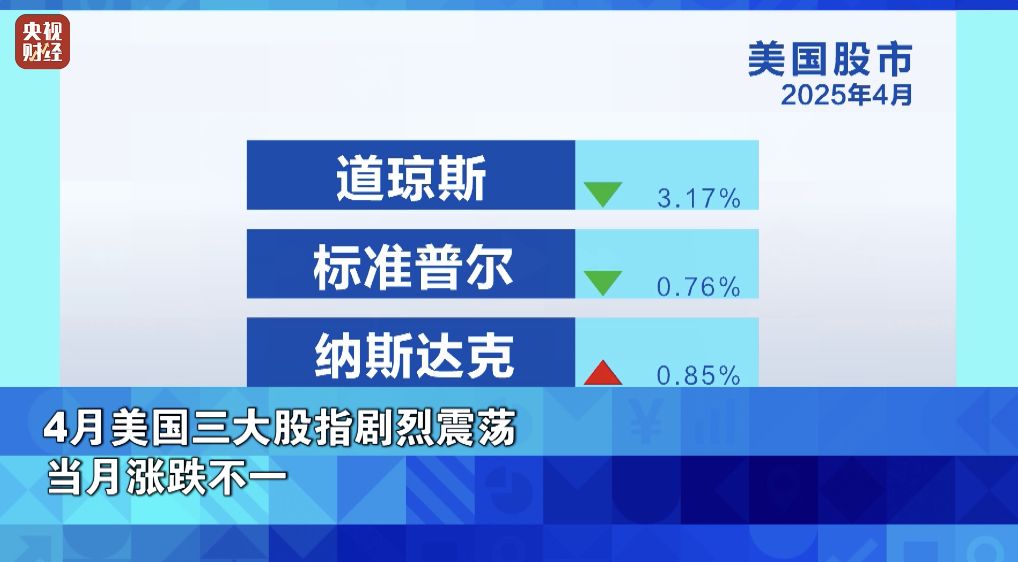 周三是今年4月的最后一个交易日,受特朗普政府关税政策冲击,美股大量股票当月一度接连遭投资者抛售,经历剧烈震荡后涨跌不一。其中,4月道指下跌3.17%,标普500指数跌0.76%,纳指上涨0.85%。
