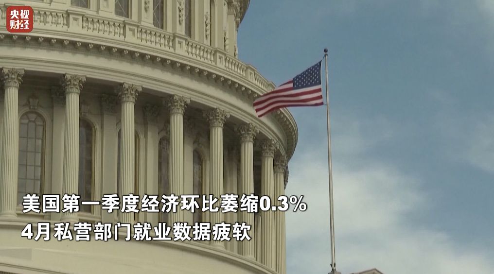 经济数据方面,美国商务部周三公布的最新数据显示,2025年第一季度美国国内生产总值(GDP)环比按年率计算萎缩0.3%,增速较去年第四季度的环比按年率增长2.4%大幅下滑。这一数据的糟糕程度超出市场预期,凸显美国政府关税政策引发的不确定性持续上升,令企业与消费者信心受挫。同一天出炉的就业数据显示,4月美国私营部门新增就业人数仅为6.2万人,大幅低于市场预期的12万人,表明企业放慢招聘步伐。此外,美联储密切追踪的核心个人消费支出(PCE)指数在今年第一季度增长3.5%,较前值大幅反弹。对此,外界普遍担忧美国经济将陷入衰退的风险。