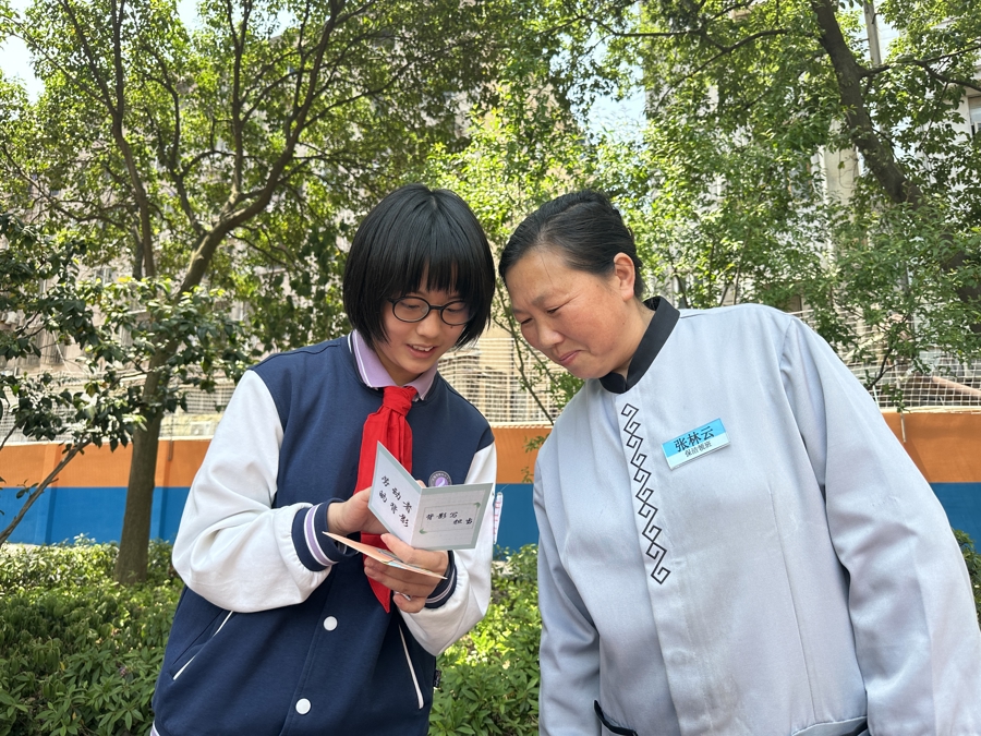 张阿姨是格致初级中学的保洁领班,在她看来,自己和同事们的工作再普通不过,无非是拿着扫帚和抹布,这里扫扫、那里擦擦,让校园“随时随地”保持干净整洁。她没想到,这“随时随地”被孩子们看在眼里。“五一”到来之际,她收到了一首写给保洁阿姨的诗,充满想象力的语言,来自初一(10)班张雨彤的创作,“您把落叶扫成候鸟队列……大地接过扫把时,满城银杏忽然黄成九十度的光”。