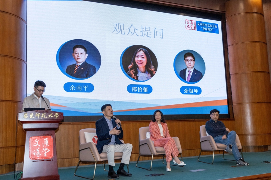 【导读】4月26日,全球南方系列十讲的第二讲“数字技术在全球南方的开源与共享”,在华东师范大学普陀校区举办。华东师范大学政治与国际关系学院教授余南平做主讲,并在圆桌环节与华东师范大学上海人工智能金融学院院长邵怡蕾、字节跳动智能算法产品原高级总监余祖坤、华东师范大学政治与国际关系学院院长吴冠军展开多维度讨论。约150位听友参与现场互动。上观App、央视频、华东师大微信公众号、文汇报微信公众号等同步直播,约1.5万人次观看。