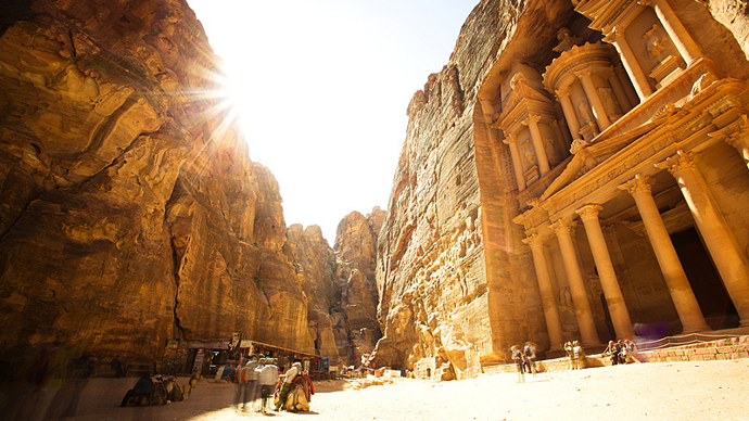 佩特拉古城建于公元前9世纪,是约旦最负盛名的历史古迹和旅游景点之一,坐落于约旦首都安曼以南200余公里处。佩特拉古城于2007年入选世界新七大奇迹,于1985年被联合国教科文组织列入世界遗产名录。近年来,这里多次遭遇山洪暴发,气候变化对这一世界遗产的影响引发人们的担忧。