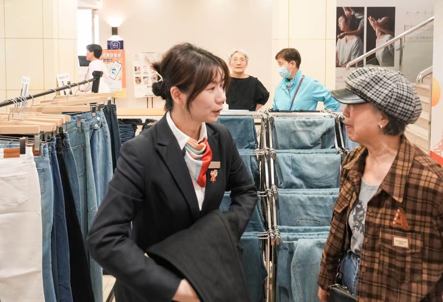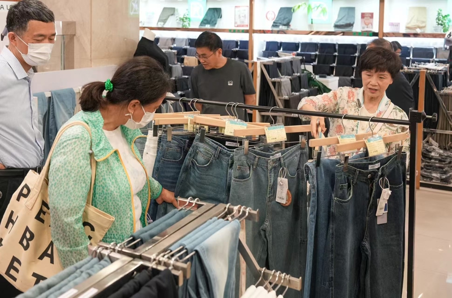 “我们是4月24日联系上永安百货的,仅仅用了一周的时间,商品就上架销售了,速度之快,难以想象。”宝玺集团负责人王诚伟告诉记者,其80%的出口业务面向美国市场,关税战致使公司对美业务全线受阻,大量原本出口美国的订单牛仔裤陷入滞销困境。一筹莫展之际,宝玺集团看到了百联股份转内销专班的消息,立即通过扫码填写企业诉求。