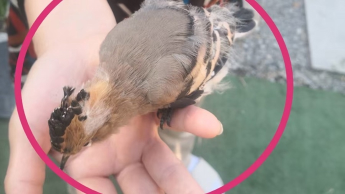 绿华派出所民警赶到现场查看,发现幼鸟基本长成,但不能正常飞起,鸟的头部长有棕红色羽冠,羽冠、翅膀和尾部毛色均呈现黑白相间斑纹,根据这一明显特征,民警确定三只幼鸟为国家二级保护动物戴胜。接着,民警在阳台上方的檐樑上看到留有鸟窝的痕迹,小戴胜一家应该是从上面掉落下来的,担心到幼鸟是否受伤,民警第一时间联系了区林业站,请专业人员到场处置。