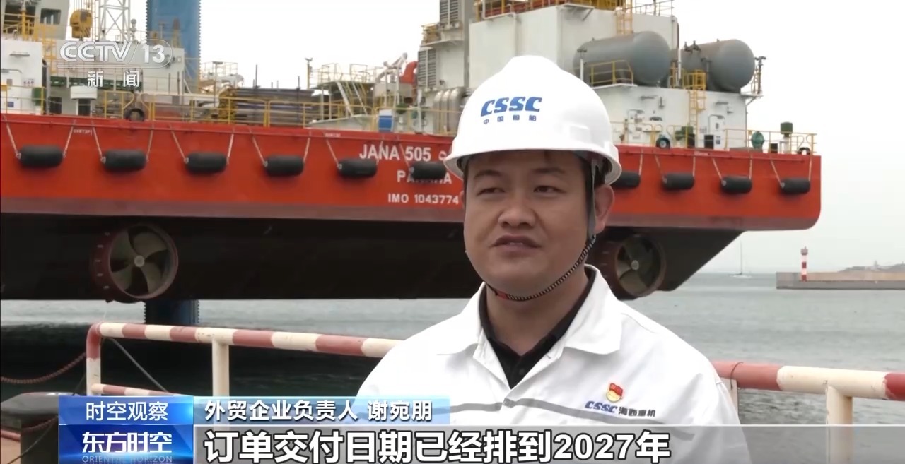 外贸企业负责人 谢宛朋:目前,在建外贸平台及港机设备40余台,订单交付日期已经排到2027年。