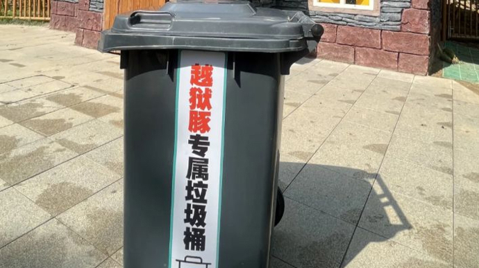 令人意外的是,抓捕“躲躲”时的一个垃圾桶在网上火了。网友笑称这是给予卡皮巴拉“桶装待遇”,工作人员也顺势给垃圾桶贴上了字条,称为“越狱豚专属垃圾桶”。