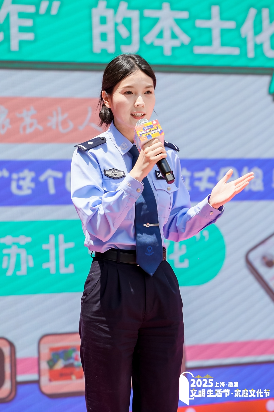 “守好皮夹子,伐睬阿诈里!”在上周六举行的杨浦第二届文明生活节“城市文明开放麦”舞台上,一位“00后”警花以普通话、上海话、英语、苏北话四种语言“丝滑”转接的脱口秀,生动演绎“防诈宝典”,让台下观众叫好不断、笑声不断。这位通过海选最终站上舞台的女警官,就是杨浦公安分局“网红民警”潘冷慧,也因为自媒体账号叫“小冷警官”,而更多地被大家称为“小冷警官”——从普法宣传民警到城市文明推荐官,从短视频博主到方言段子手,她用“接地气、年轻化、强互动”的“线上+线下”宣传模式,为城市平安注入新活力。