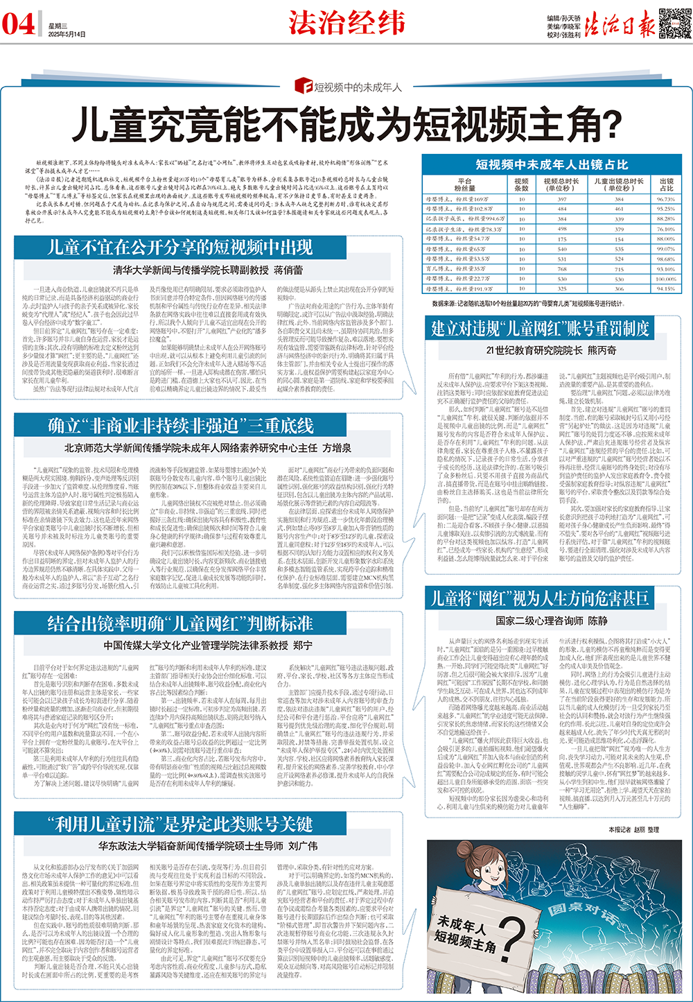 原标题:《法治日报整版聚焦:儿童能否成为短视频主角?》