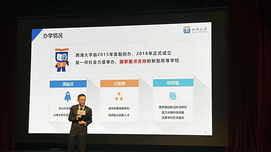 施一公透露:学校并不会简单通过纸笔测试来衡量学生的知识水平。“不能简单地将这看成一场考试,我们会组织很多的参观和体验活动,这个过程既是我们在看他们,也是他们在看我们、看西湖。我们希望这是一场双向奔赴。”