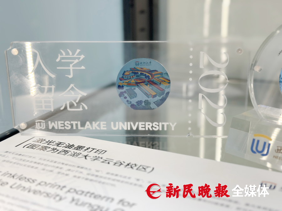 这项突破,便来自西湖大学工学院仇旻教授团队。在纳米光子学与仪器技术实验室外的陈列柜中,记者看到一份仇旻实验室送给2022级首届本科生的入学礼物——看似一幅“玻璃画”,实则大有来头。该实验室首创的激光无油墨彩打技术,以多层复合陶瓷材料薄膜作为“纸”,激光为“笔”,通过干涉、吸收等效应形成特定的反射色,展示云谷校区的校园美景在(下图)
