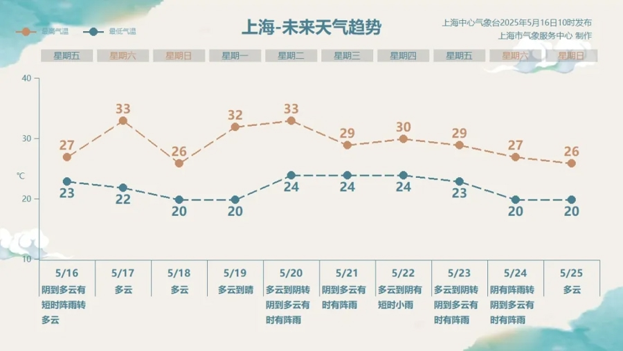 上海降雨减弱,周末气温起伏明显