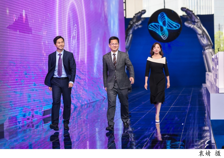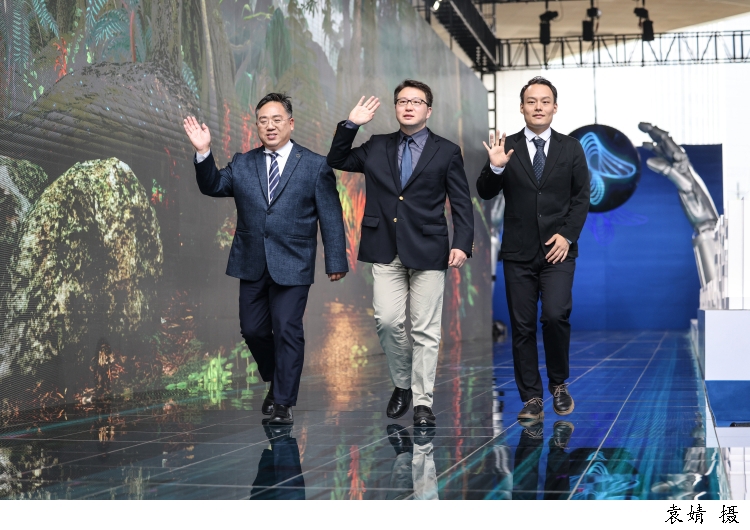 图为上海交通大学副教授,无问芯穹联合创始人戴国浩、ATLATL飞镖创新中心创始人兼首席执行官朱鹏程、康码(上海)生物科技有限公司创始人兼首席执行官郭敏走上红毯。