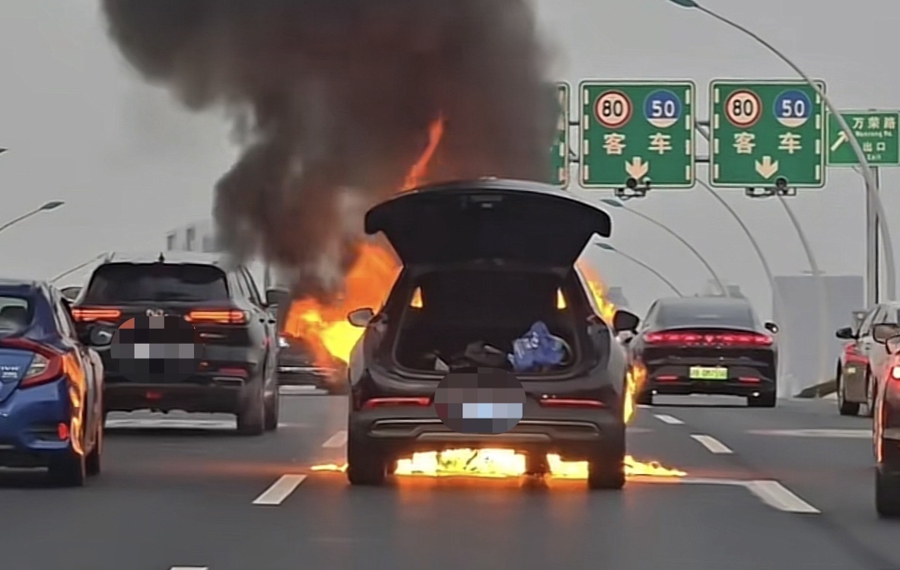 今晚(5.17)6时40分许,多位市民报料,中环内圈沪嘉立交至沪太路路段,有一辆SUV起火,后方车辆拥堵,所幸事故中无人员伤亡。