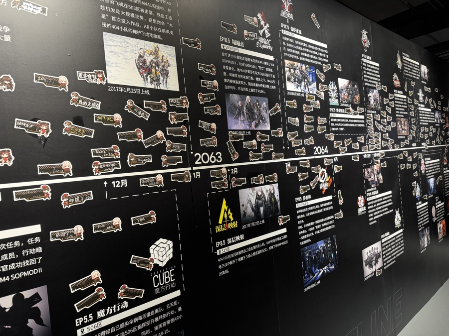“我在2038年等你”“那年,我要G41”“永远爱你,UMP9”……玩家们的祝福与回忆,满满当当写满了留言墙。这场以“溯源回归”为主题的沉浸式展览,通过世界观叙事、场景还原、创作幕后、情感共振等单元展区,串联起众多玩家与战术人形跨越虚拟与现实的羁绊,带领观众共同回顾《少女前线》九年来的点滴历程,重温游戏带来的激情与感动。