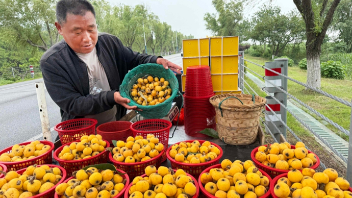 初夏的太湖之滨,苏州东山镇万亩枇杷林缀满金黄,空气中弥漫着清甜的果香。当地果农们在果园中穿梭忙碌,熟练地采摘着成熟的果实。