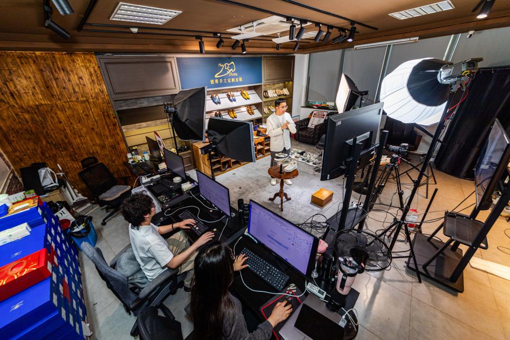 4月19日,德赛集团总经理张文杰在直播间内进行直播带货。今年以来,为适应外贸市场的新变化,德赛集团调整生产线,组建了专业的电商运营团队,在开拓国际市场的同时,积极借助京东、抖音、天猫等国内电商平台加速“出口转内销”,扩展销售渠道。“出口转内销”正成为这家企业应对外部挑战、实现转型发展的重要突破口,也为其品牌成长开辟了新的可能。 新华社发(刘吉利摄)