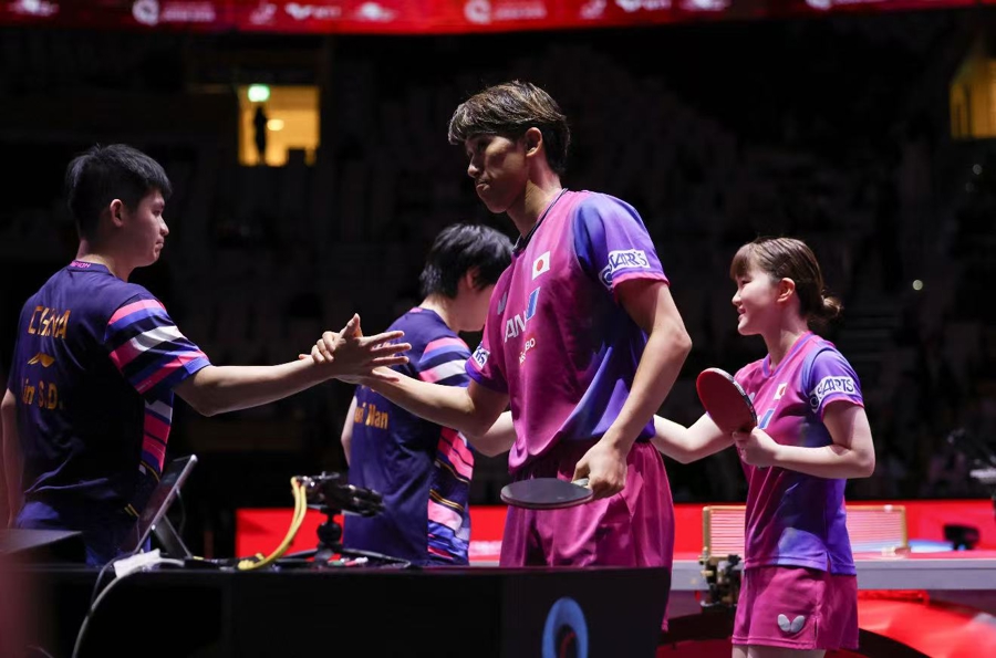 最关键的第四局,日本组合来势汹汹,一度取得8比3的领先,“动漫”连追5分追平比分。而在关键分阶段,吉村真晴/大藤沙月表现得更有进攻性,他们以10比8率先拿到赛点,尽管林诗栋/蒯曼接连挽回两个赛点,但凭借吉村真晴丰富经验和冷静的关键球处理,最终以12比10锁定胜局。