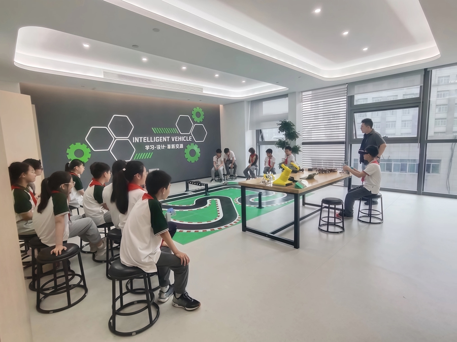 这里没有枯燥的理论课,只有边玩边学的硬核科技:小学阶段重在体验学习,初中生则挑战更多,在“玩、学、赛、研”的闭环中体验真正的科技成就感。