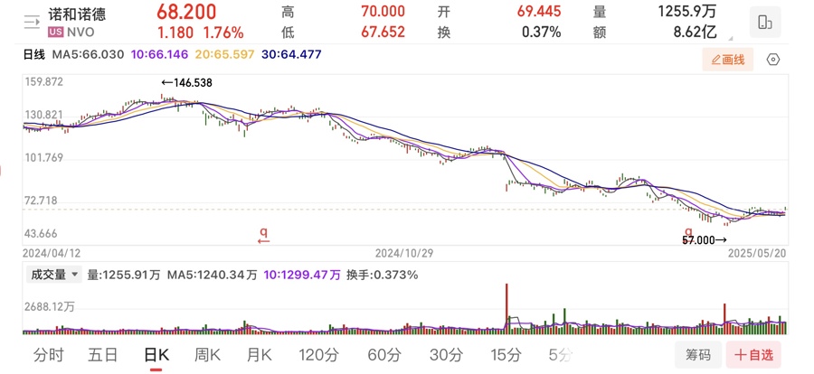 就在几天前,欧洲药企巨头诺和诺德宣布,现任首席执行官周赋德将离任。受此消息影响,诺和诺德美股股价当天下跌2.69%。