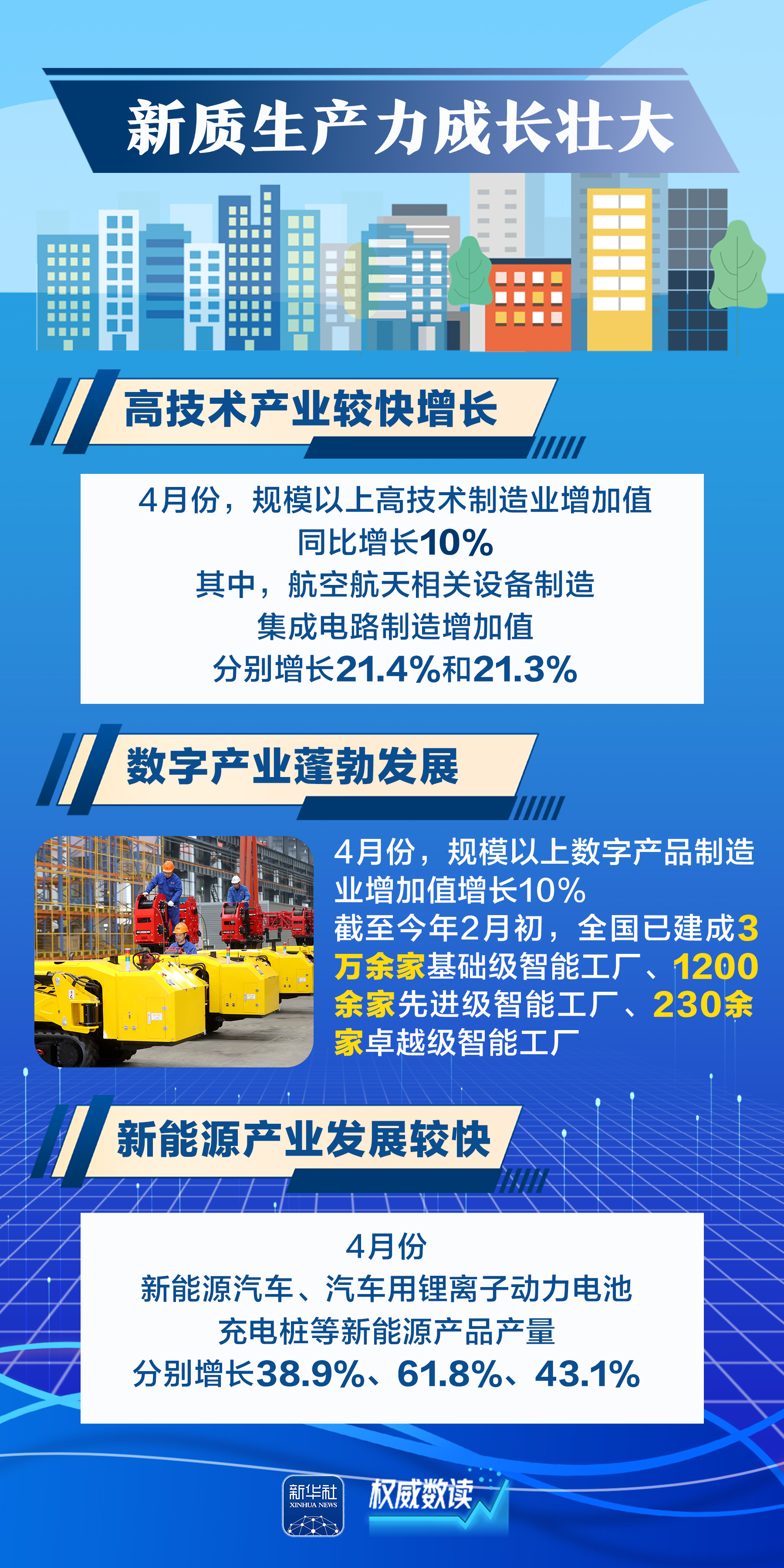4月份经济数据陆续出炉,中国经济顶住压力稳定增长,延续向新向好发展态势。
