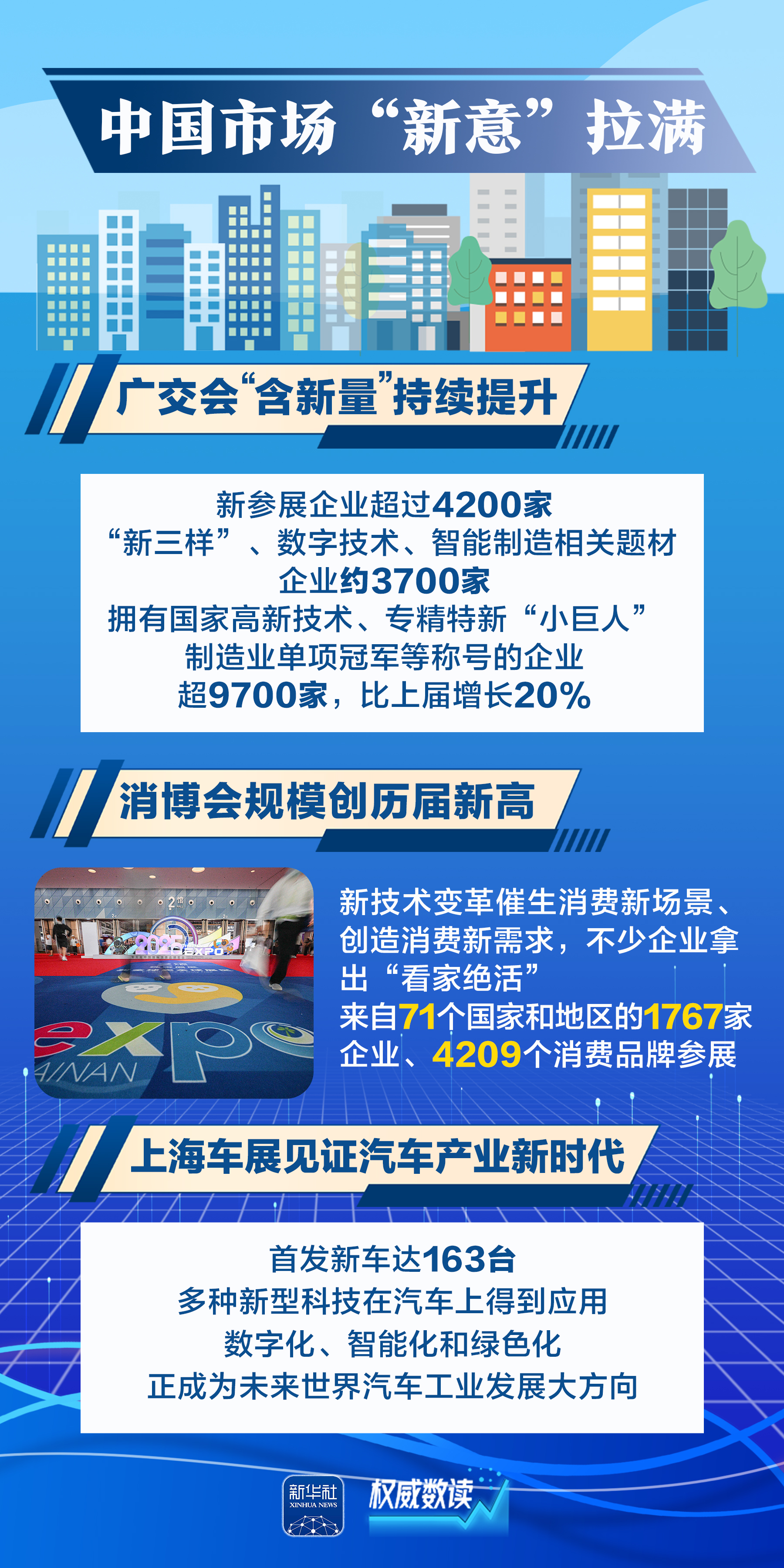 新质生产力成长壮大、新发展格局加速构建、消费“焕新”持续释放潜力、中国市场“新意”拉满吸引全球……跟随这几组数据,一起感受中国经济“含新量”。