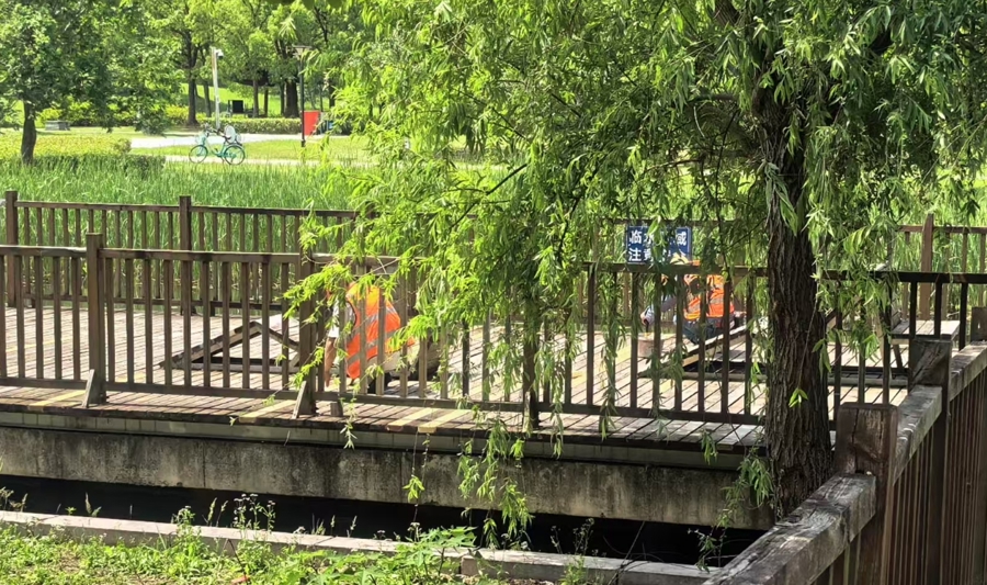 近日,上观App刊登《紫气东来公园木栈桥存隐患:护栏现3米“豁口” 桥面开裂“步步惊心”》的稿件,反映嘉定区紫气东来公园内,三座木质景观栈桥存在护栏破损、桥面开裂等安全隐患。报道刊出后,引起公园管理部门重视。目前,相关部门已将破损及开裂的桥面部位修复。安全隐患排除,市民们可以安心游园。