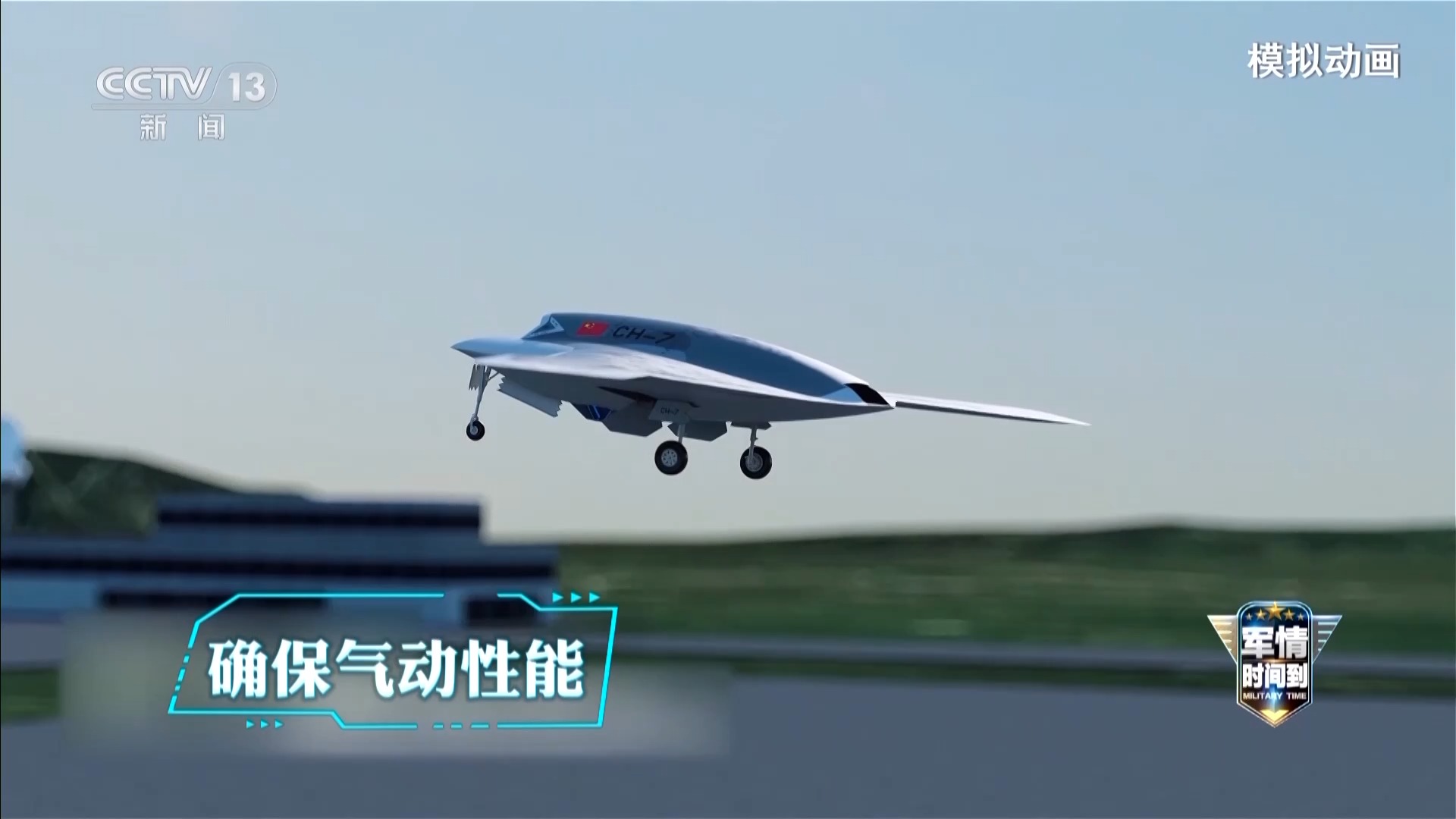 中国航天空气动力技术研究院 房帅:这款无人机跟我们家族其他款无人机最大的不同就在于它整个飞翼布局,整个气动布局采用的是翼身高度融合,我们采用的是水平尾翼,确保气动性能不降低的情况下,最大限度保证它的隐身能力。