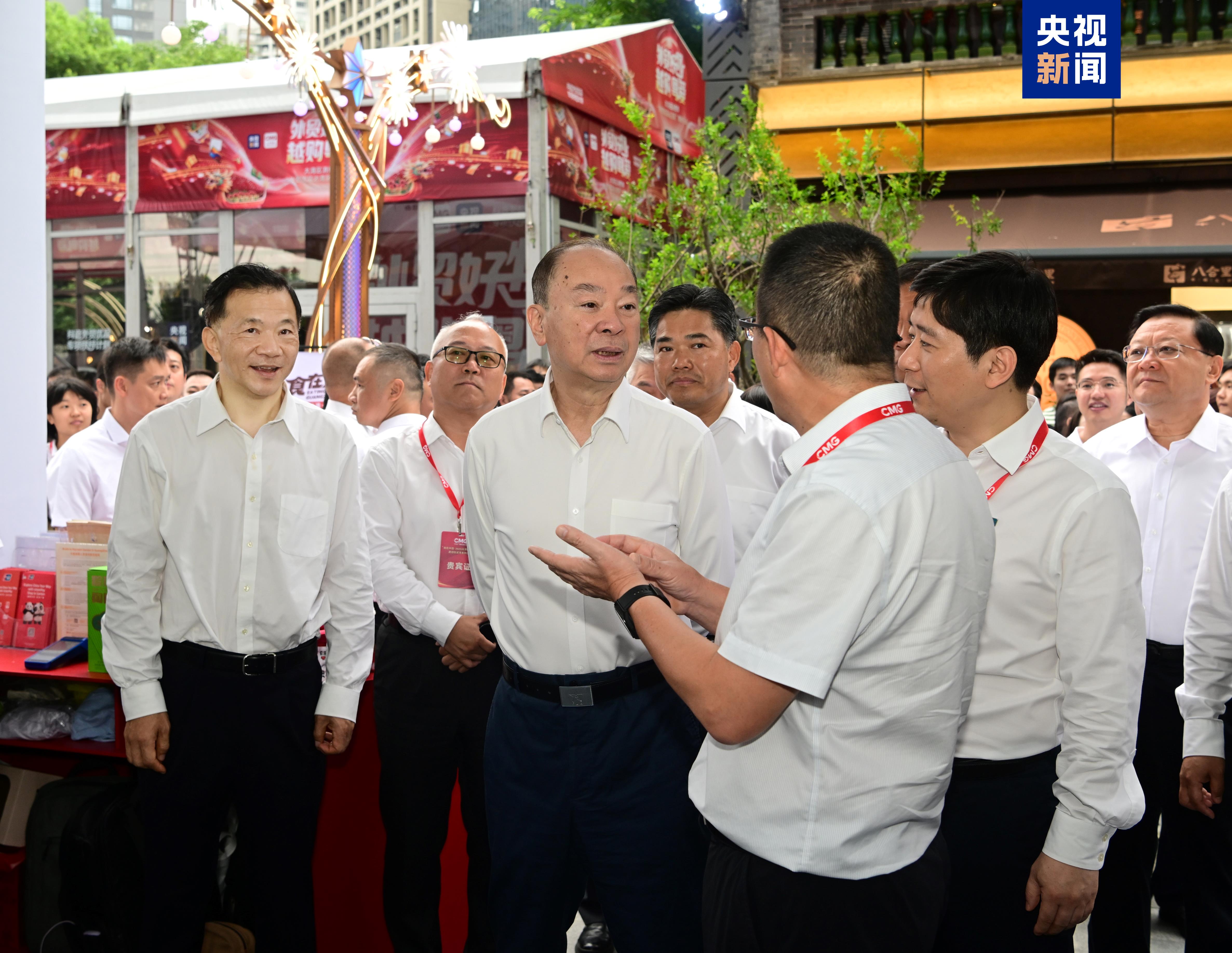 广东省委书记黄坤明出席活动,并与中宣部副部长、中央广播电视总台台长慎海雄,广东省委副书记、省长王伟中,商务部党组成员、副部长盛秋平,广东省委常委、统战部部长王曦,广东省委常委、组织部部长冯忠华,广东省委常委、广州市委书记郭永航,广东省委常委、副省长张国智,广州市委副书记、市长孙志洋共同启动“购在中国 2025大湾区消费季”暨中央广播电视总台“外贸优品达湾区”媒体行动。