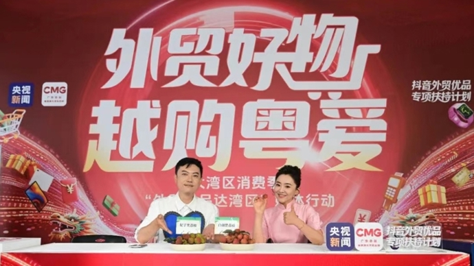 5月24日,“购在中国·2025大湾区消费季”启动,央视新闻联合总台广东总站发起“外贸优品达湾区”媒体行动。作为“重头戏”之一,24日下午,央视新闻联手抖音生活服务,推出《外贸好物 越购“粤”爱》外贸优品专场直播活动,助力外贸企业打开内销大门。直播间里人气高涨,网友的每一次下单,都是为内外贸一体化“打气加油”。