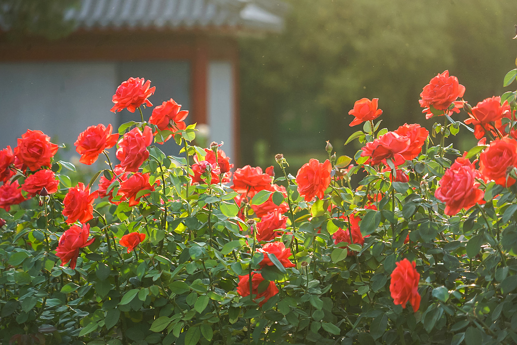 北京户外盛开的红色月季花丛。图源:视觉中国
